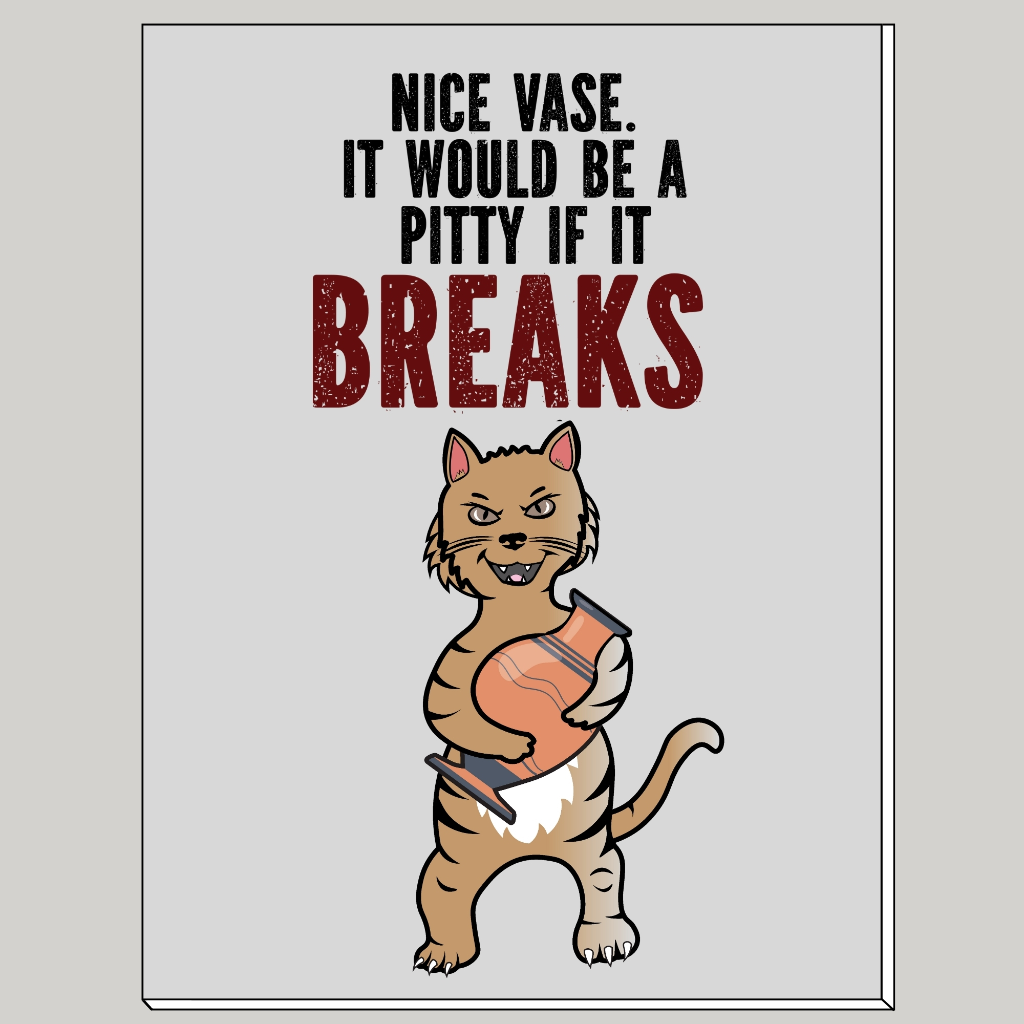 Bring a bit of animal fun and mischievous cats to your daily routine with our lined notebook featuring a unique cover design. On the front cover, you’ll find an illustration of a mischievous cat holding a vase and grinning wickedly, suggesting its nefarious intentions towards the vase. We know that cats love to destroy everything we posess. This notebook is not just a writing tool but also an expression of cat loving personality, perfect for those who appreciate humor and original cat design.